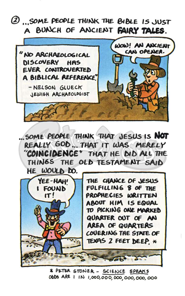 This tract humorously covers the answers to many of the tough questions people have about the Christian faith.