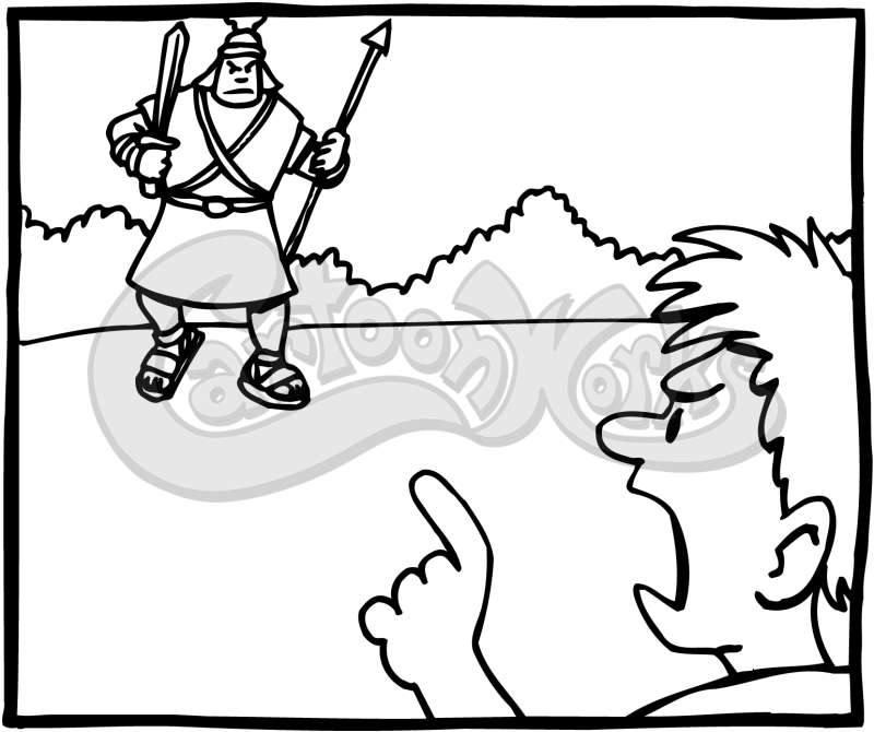 biblical, boy, boys, cartoon, cartoons, child, children, david, figure, forest, forests, goliath, kid, kids, male, males, man, men, sling, spear, spears, sword, swords, teen, teenager, teenagers, teens, threaten, threatening, threatens, yell, yelling, yells, youth, youths