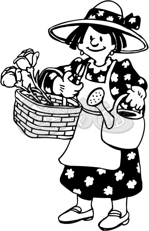 Woman With Flowers And Watering Can