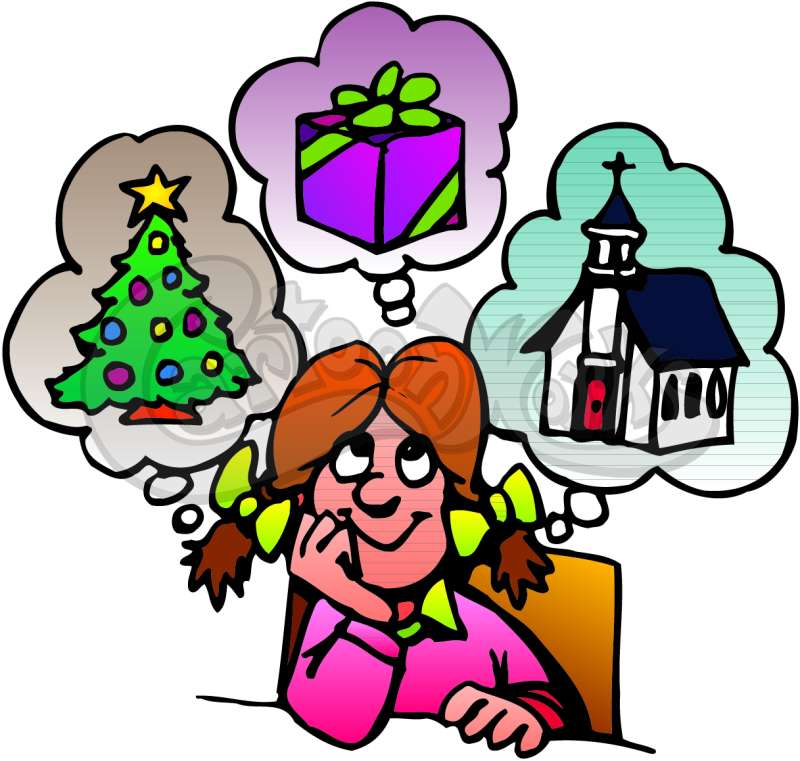 Girl Thinking Of Christmas And Church