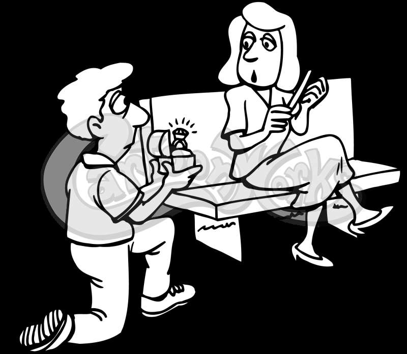 adult, black and white, color, coloring page, contour, line, man, outline, proposal, ring, woman