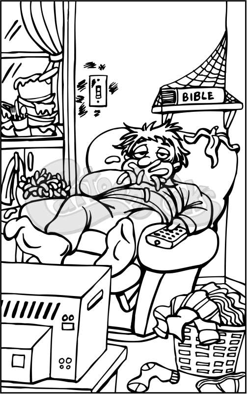 Lazy Man On Sofa In Messy Room
