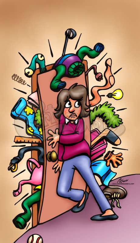 Woman Trying To Shut A Door Against Junk