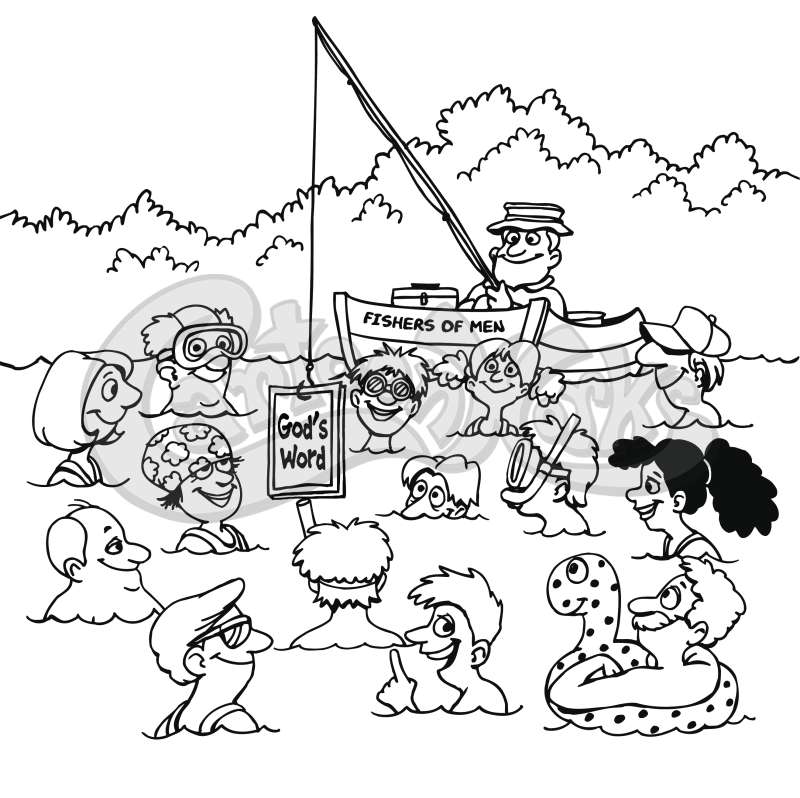 People Swimming And A Man Fishing With God’s Word