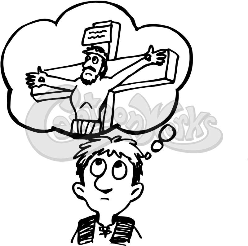 Boy Thinking Of Jesus On The Cross