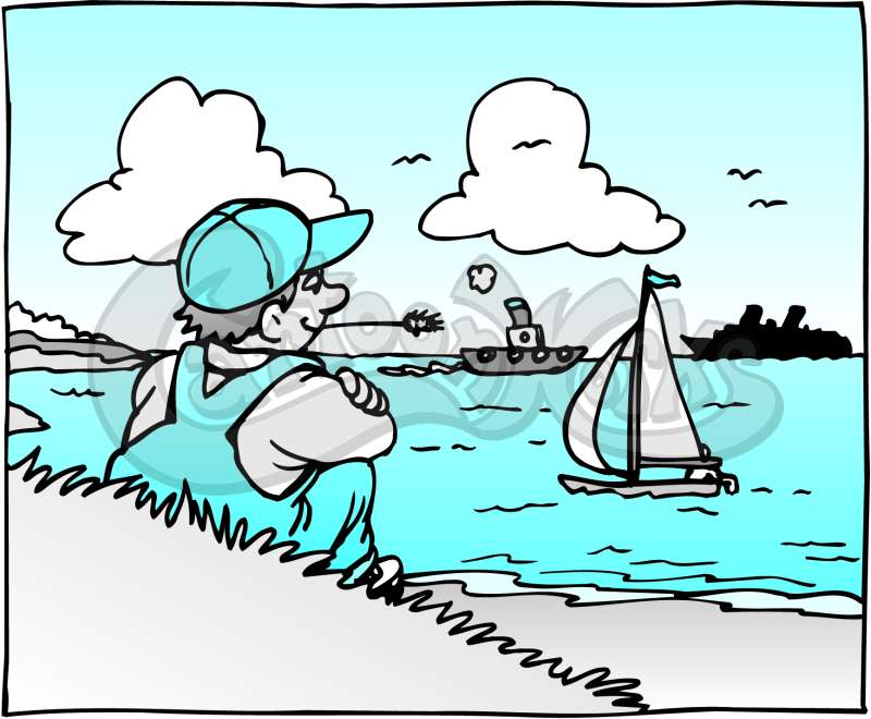 Boy Sitting On Hillside Watching Boats