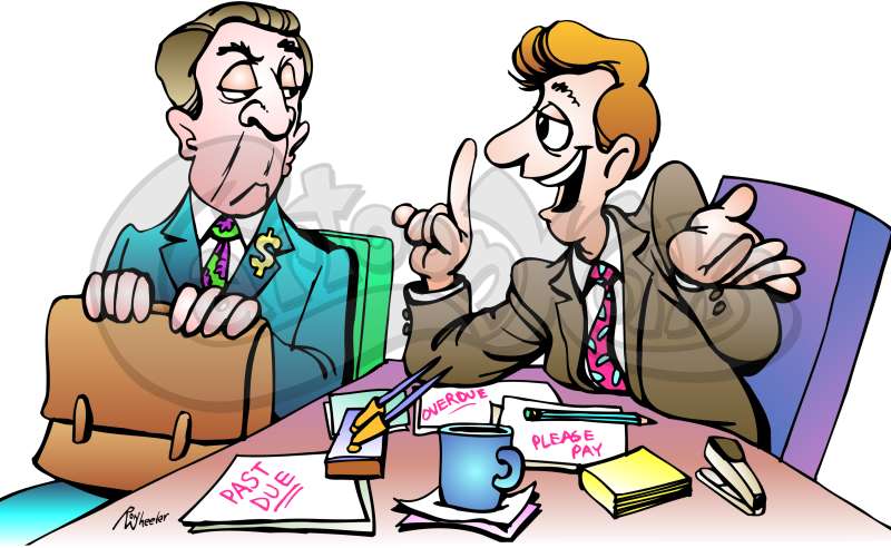 Man And Banker Sitting At Desk With Overdue Bills