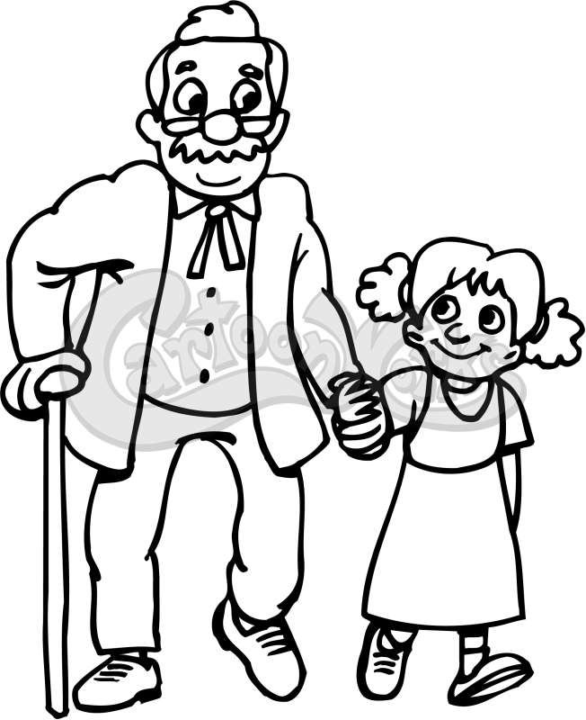 Senior Man With Cane And Girl