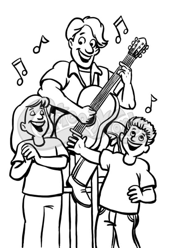adult, black and white, boy, child, color, coloring page, contour, guitar, kid, line, man, music, outline, sing, singing, woman, worship, youth