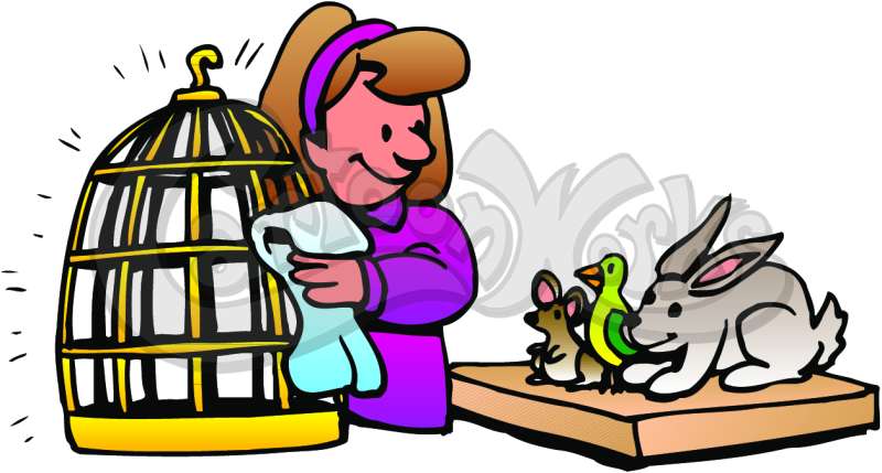 Girl Cleaning Out A Pet Cage