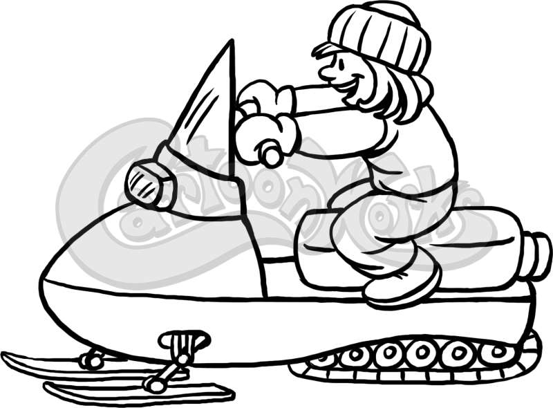 adorable, black and white, cheerful, child, cold, color, coloring page, contour, cute, fun, girl, gladness, happiness, happy, humor, joy, kid, line, outline, smiling, snow, snowmobile, snowmobiling, winter, youth
