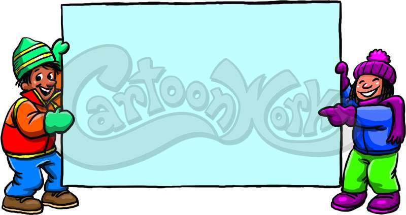 Children In Winter Clothes Holding A Sign