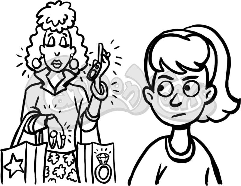 Girl Looking At A Woman With Lot Of Purchasers