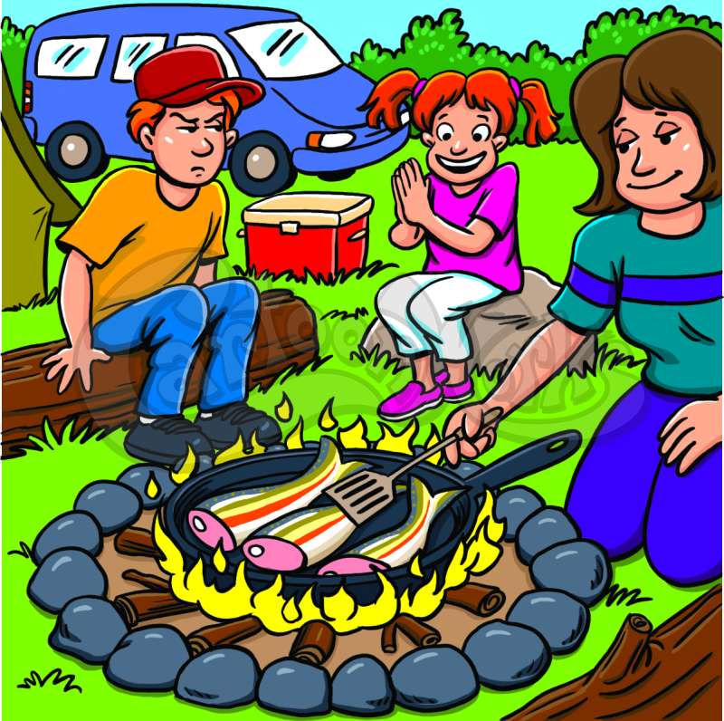 Unhappy Boy At A Fish Fry With A Woman And Girl