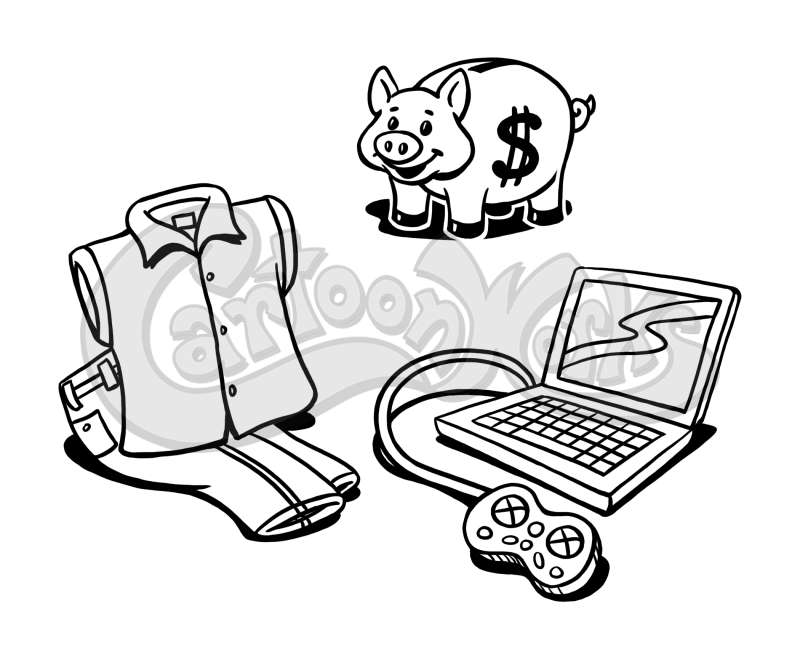 Clothes, Video Game, Piggy Bank