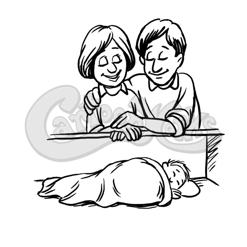 Adults With Baby In Cradle