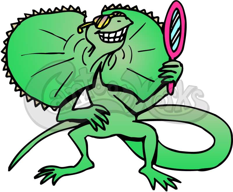 Smiling Lizard With Sunglasses Looking Into Mirror