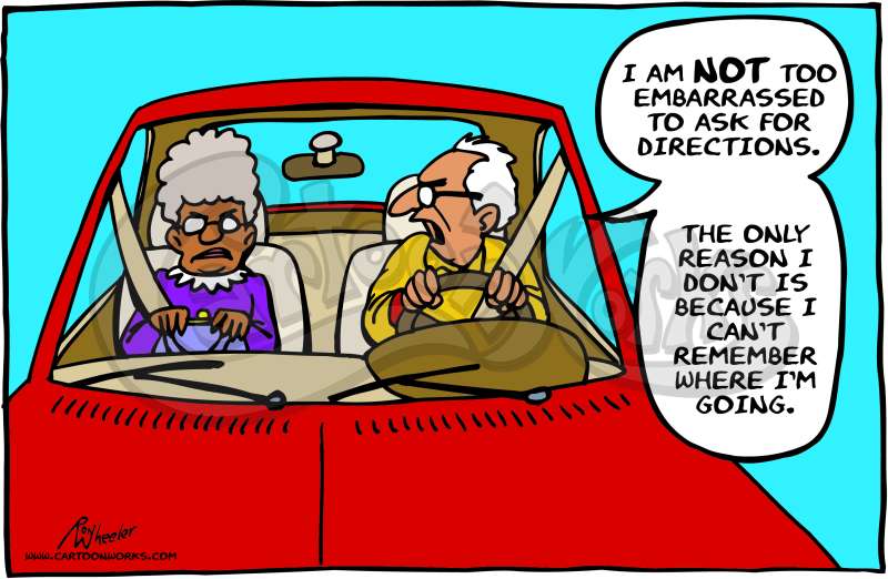 Cartoon Of Senior Couple In Car