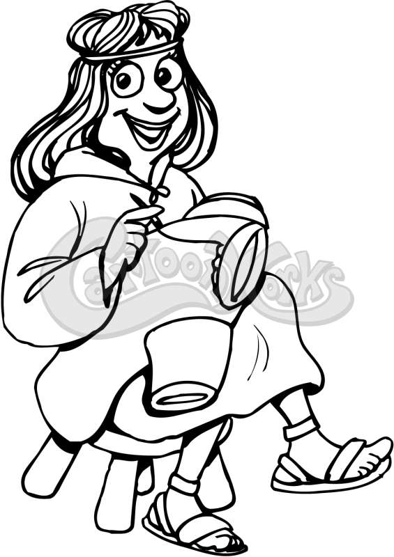 Woman Sitting And Sewing