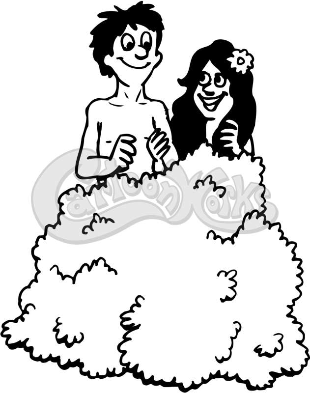 Adam And Eve Standing Behind A Bush In The Garden Of Eden