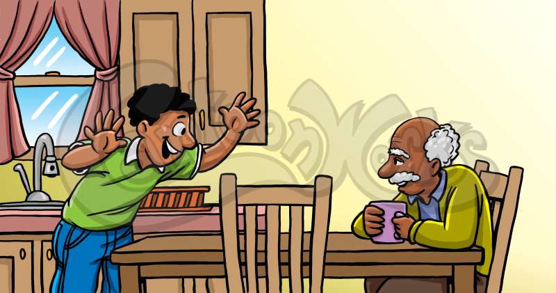 Grandson And Grandpa At Dinner Table