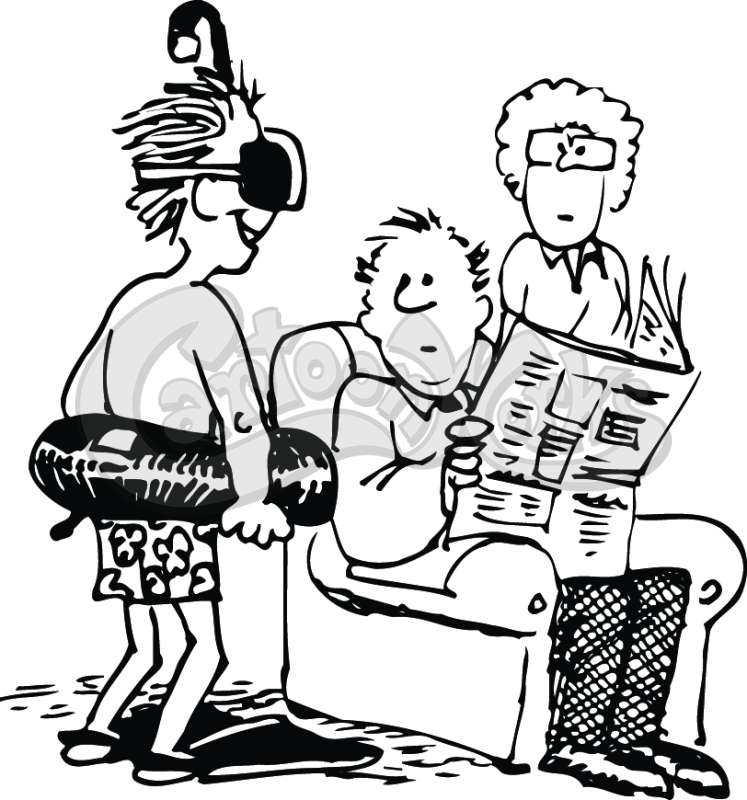 Parents Looking At Their Son Wearing An Inner-Tube