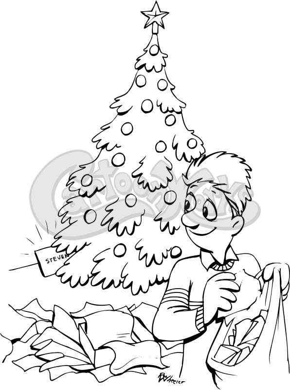 Man With Christmas Tree And Presents