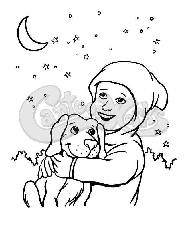 Child and Dog Happily Stare At Stars